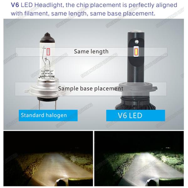 H7 V6 Automotive LED Headlights High Low Beam With Turbo Fan LED Bulb Images |